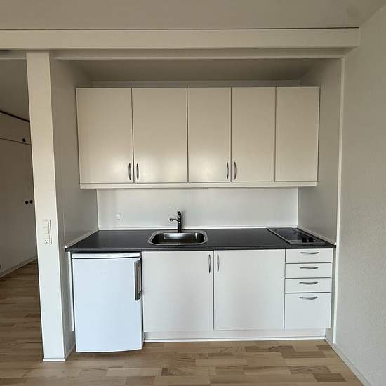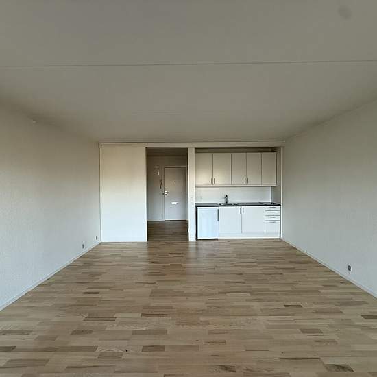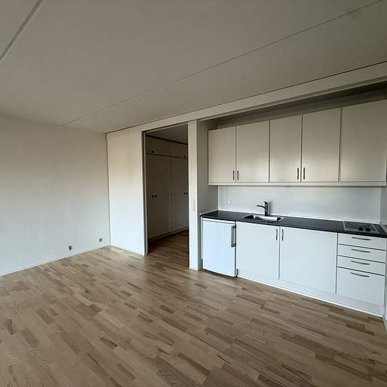About 1-room apartment in Helsingør with a large balcony. The apartment has an open kitchen and a bathroom. The apartment will be newly painted/sanded for takeover.