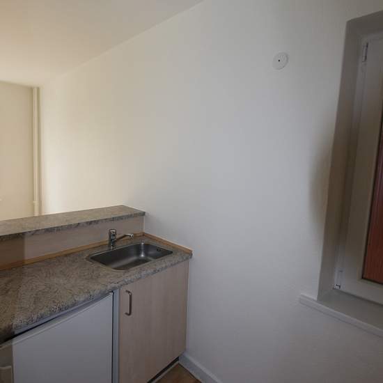 Billig 1-værelses i centrum 1 værelses lejlighed med delvist åben køkken. Stue/værelse med lakeret bøgeparketgulv. Badeværelse med hvide fliser. God skabsplads. Husdyr ikke tilladt! Ejendommen, som er opført i 1956 og løbende moderniseret, er beliggende 1,5 km fra centrum. Ejendommen består af 24 lejligheder. I kælderen er der fælles vaskeri, tørrerum og cykelrum. Til hver lejlighed er der ligeledes et pulterum. Tilhørende ejendommen er der garageanlæg og gode parkeringsforhold. Desuden en velholdt solgård med græsareal.