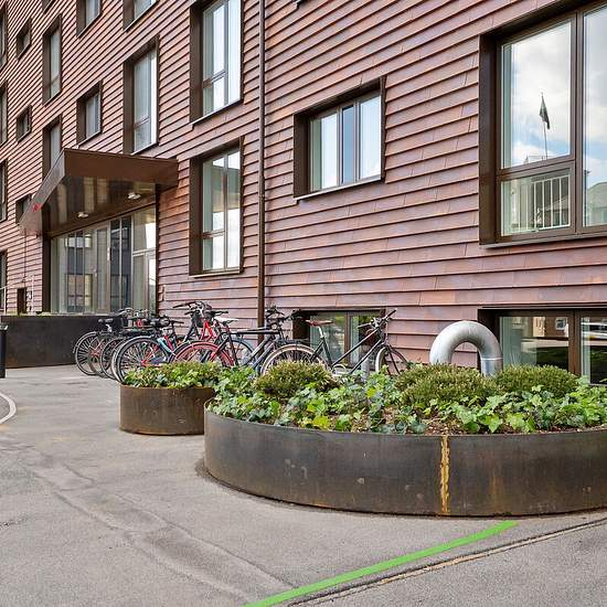 Velkommen til Tigergården på Østre Stationsvej 2F i Odense C. Her udlejer vi 1-værelses lejligheder og enkelte 2-værelses lejligheder. Udover din egen bolig er der flere fællesrum i hele bygningen samt et festlokale i kælderen. Hårde hvidevarer Der er et køle- og fryseskab, ovn, 2-zoners induktionskogeplader og emhætte i lejlighederne. Vaskemaskine og tørretumbler findes i kælderen. Husdyr Lejere kan ansøge om tilladelse til at holde én kat. Se vores samlede husdyrsregler her. Parkering Det er muligt at leje en p-plads i en parkeringskæld...