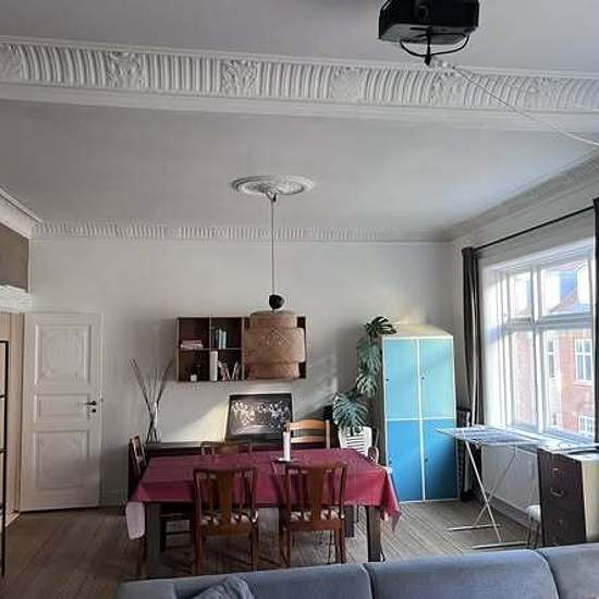 Roomie søges til den dejligste lejlighed midt på gågaden Indflytning 1. Marts Lejligheden ligger som sagt midt på gågaden (Søndergade 70). Med den meget centrale placering ligger lejligheden i gåafstand eller en kort cykeltur fra det meste, herunder Bruuns Galleri, Åen og Aarhus Universitet. Lejligheden er 185 kvm og består af 4 værelser, køkken, stor stue/spisestue, toilet og viktualierum. Der er både vaskemaskine, tørretumbler og opvaskemaskine installeret i lejligheden. Dit værelse vil være ca. 9–10 kvm + indbygget opbevaringsplads o...