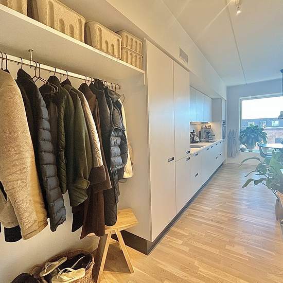 Velkommen til Østre Havnepark – tæt på vandet, centrum og Øgadekvarteret! Her finder du en nybygget 2-værelses lejlighed fra 2022 med gulvvarme, ventilationsanlæg – og alt i hvidevarer. Lejligheden byder på et flot, lyst køkken fra Svane med alle hvidevarer fra Blomberg. Fra det åbne køkken-alrum er der direkte adgang til boligens store sydvendt altan. Boligen har en praktisk entré – oplagt til sko og overtøj – der leder videre til badeværelset med rummelig bruseniche, vaskemaskine og tørretumbler samt spejl med indbygget lys. Det rummel...