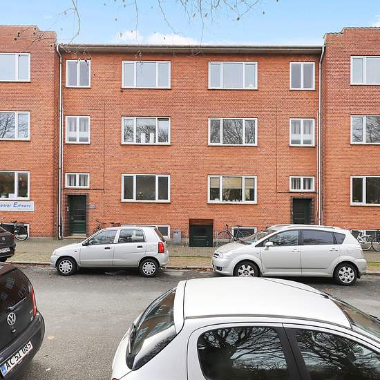 Flot ejendom, fra 1938, med 12 2 værelses lejligheder der løbende er renoveret. Ejendommen ligger centralt, i rolig gade, der er indkøbes muligheder og speciel butikker i nærheden Alle lejligheder har altan Der er 5 min. gang til Kongensgade, og kort cykeltur til Svømmestadion og Blue Water Arena, der er desuden flere grønne rekreative områder i nærheden. Parkerings mulighederne på gaden er gode hele dagen og der er dørtelefon med kodetastatur for lejernes sikkerhed. Der er kælderrum og fælles vaskekælder, desuden er der et stort hyggel...