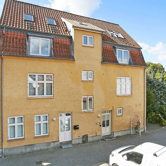 Flot lys 2-værelses lejlighed, køkken-alrum, vinduer med 3-lags lavenergiruder. Stor vestvendt altan. Dørtelefon. Tilhørende depotrum. Stort gård- og haveanlæg. Attraktivt beliggende i gammel kvarter med sjæl, 5 min. gang til gågaden og centrum. Tilhørende depotrum. Lejligheden er beliggende i smuk ejendom, der løbende er moderniseret. Vask/tørretumbler og kold vand er inkluderet i huslejen. Husdyr tilladt under særlige vilkår, forhør nærmere på kontoret.