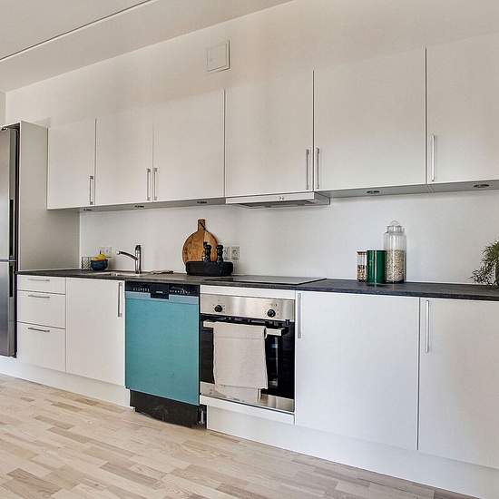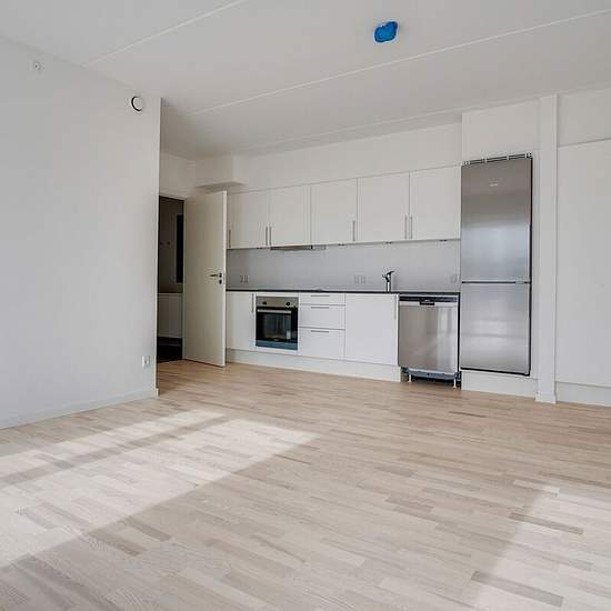 OBS: Det er et krav, at lejere på dette lejemål er 55+ år og uden hjemmeboende børn. Du træder ind i lejlighedens køkken-alrum, hvor der ved hoveddøren er et indbygget skab til overtøj. Køkkenet er placeret langs den ene væg, så du nemt kan indrette dig med både spiseområde og stue. Badeværelset har gulvvarme. Alt efter boligens størrelse er der ét eller to værelser. Depotrummet er placeret i kælderen. Alle lejligheder har enten altan eller terrasse. Hårde hvidevarer Der er alt i hårde hvidevarer fra Siemens inklusive opvaskemaskine. På b...