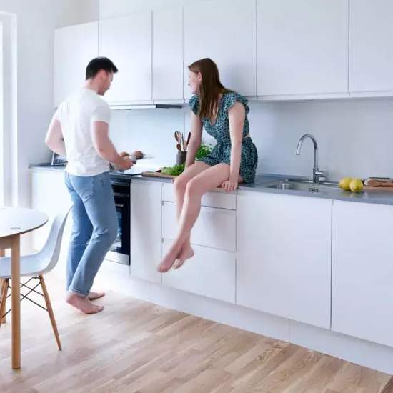Lejligheden 2 værelses lejlighed med en rummelig stue, hvorfra du har udgang til vestvendt altan. I forbindelse med den rummelige stue, finder du et moderne hvidt grebsløs Invita køkken med grå CoreStone bordplader og god skabsplads samt hårde hvidevarer fra Gram med bl.a. opvaskemaskine. Soveværelset er udstyret med faste garderobeskabe. Rummeligt og indbydende badeværelse med flotte mørke fliser på gulv og i brusenichen samt gulvvarme. Formstøbt vask, væghængt toilet samt vaskesøjle. Flotte gulve i eg lamelparket. Gode lysindfald i hele le...