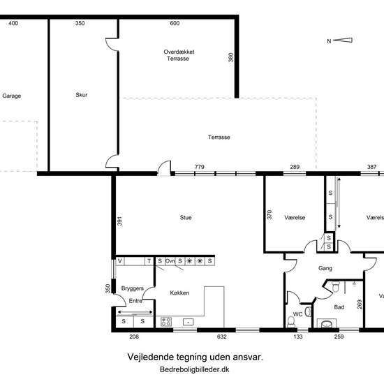 120 m2 nyopført Villa * Entre med garderobeplads * Bryggers med vaskemaskine & Tørretumbler * lækkert køkken/Alrum i åben plan med stuen * 3 store soveværelser med skabsvæg * gæstetoilet * NYT stort Badeværelse * lys og venlig stue med udgang til overdækket terrasse * 56 m2 nyopført garage Fuldt møbleret Kr 15.500 + forbrug Yderligere information