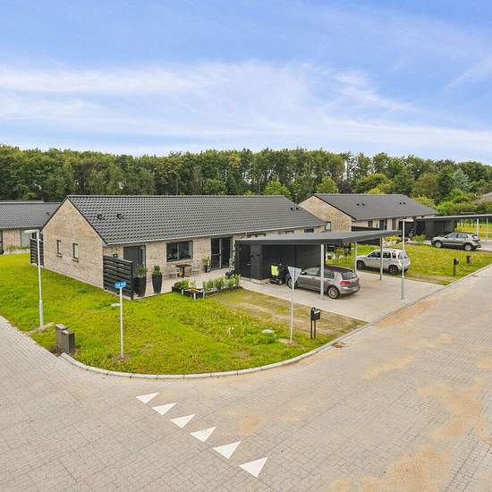 OBS: Det er et krav, at lejere på dette lejemål er 55+ år og uden hjemmeboende børn. Alle rækkehuse er i ét-plan. Du træder ind i en entré belagt med klinker. Her finder du vaskemaskine og tørretumbler samt godt med skabsplads og en bordplade med vask. Der er et stort, lyst køkken-alrum med plads til stue. Badeværelset har lyst inventar og separat bruseniche og skab. Afhængigt af størrelserne på boligen er der 2 eller 3 værelser. Ét af værelserne vil være større og velegnet til soveværelse. Fra soveværelset er der udgang til husets ene terr...