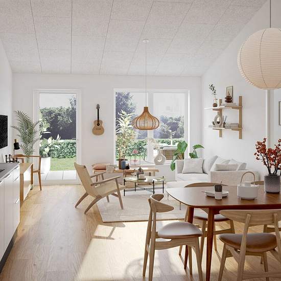 Dette 3 værelses rækkehuse i Ikast henvender sig til den lille familie eller parret som ønsker et ekstra værelse. Med til boligen følger egen parkeringsplads, skur til opbevaring samt en dejlig terrasse. Overalt i boligen har du gulvvarme samt ventilationsanlæg der sikrer dig et bedre indeklima året rundt. Træd ind i dit nye hjem Boligens entre er lavet med tanke på praktik. Her har du vaskemaskine og tørretumbler, plads til opbevaring af overtøj og sko samt et flot gulv med gråt fliselook. Videre fra entreen kommer boligens badeværelse med...