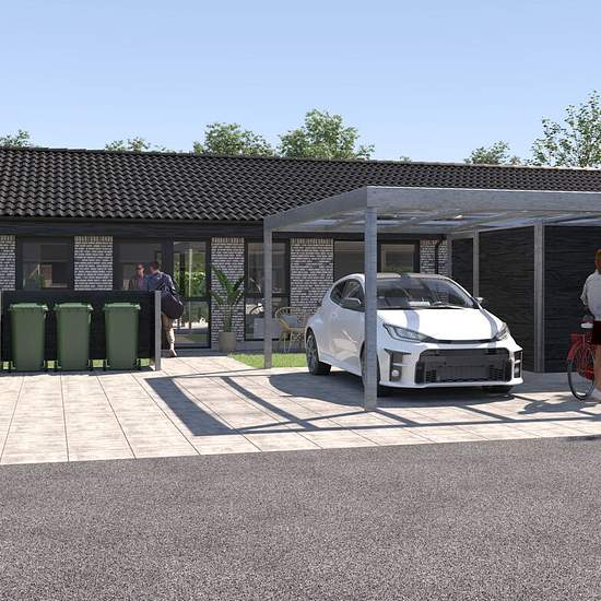 Lys, harmoni og gennemtænkt indretning Moderne bolig på 75 m² med fokus på lys, rummelighed og funktion. Her får du et hjem, der kombinerer praktiske løsninger med et roligt og indbydende udtryk – skabt til både hverdagsliv og hyggelige stunder. Boligen Boligens samlingspunkt er det lyse køkken/alrum og stue, hvor store vinduespartier og det åbne layout giver en naturlig følelse af rummelighed. Her er plads til både spisebord og sofaområde, og rummet bindes elegant sammen af direkte adgang til de to terrasser – så du kan følge solen dagen ...