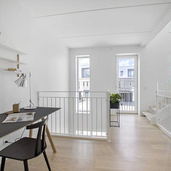 Alle rækkehusene i Sofiendalen er indrettet med store køkken/alrum, som er bygget i forbindelse med stuen. Tilsammen danner det store åbne rum rammen for et hyggeligt fællesskab og liv. I midten af Sofiendalen finder du rækkehusene, som har udsigt til de skønne grønne fællesarealer. Rækkehusene har en mørk teglbase, som bliver komplimenteret af en elegant aluminiumskasse, som giver byggeriet en lethed og et spændende spil i facaden. Der er højt til loftet i alle boligerne, hvilket giver plads til stilrene høje vinduer, som giver et dejligt n...