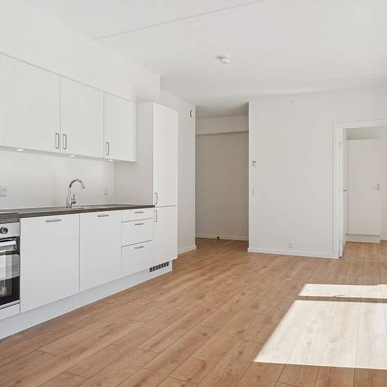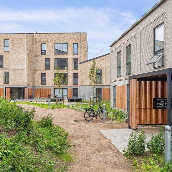 Lejlighederne kommer med forskellige planløsninger. Nogle lejligheder har en lille entré, og i andre lejligheder træder man direkte ind i køkken-alrummet. Du får et godt og funktionelt indrettet badeværelse med separat bruseniche og vaskesøjle med kombineret vaskemaskine og tørretumbler. Alt afhængig af lejlighedens størrelse er der 1 til 3 separate værelser udover køkken-alrummet. Der er depotrum tilgængeligt i næsten alle lejemål bortset fra otte boliger, hvor depotrummet er udenfor lejemålet. Alle lejlighederne i stueetagen har egen terr...