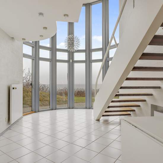 Med bedste beliggenhed på Hjerting Strandvej til bydes denne arkitektoniske pragtvilla Villaen er 275 m2 + kælder + garage I stueetagen fremhæves: Entre med garderobeplads, bryggers med vaskemaskine og tørretumbler, badeværelse med brus, køkken/alrum i åben plan med stuen – som husets centrum er her pejs med ”nedsænket aftræk” – stor stue med mange gode hjørner og højt til loftet – fra alle rum er her HAVUDSIGT – Arkitekten har fokuseret på havet som udsigtskilde * På nedre etage er ligeledes havudsigt og mange gode rum – stor fordelingsgang...