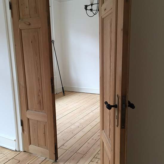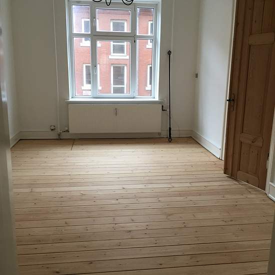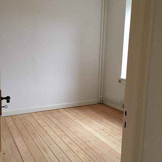 Stuelejlighed i rolig ejendom Hyggelig 3 værelses lejlighed med afhøvlede gulve og stuklofter udlejes. Lejligheden består af 3 store værelser/stuer, 1 entre, 1 lille gang, køkken og toilet/bad. Der er opvaskemaskine, komfur, emhætte og køleskab i lejemålet samt et lille depotrum. Adgang til stor vestvendt lukket gårdhave, cykelskur og til fælles vaskeri. I gårdhaven er der etableret plantekasser til brug for dyrkning af grøntsager og blomster hvis man har lyst. Alle vægge og lofter i lejligheden er hvidmalede i dag. Henvendelse pr. tlf., h...
