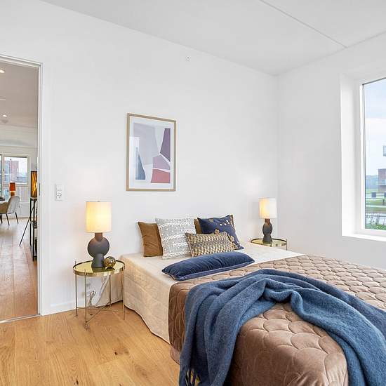 Eksklusiv lejlighed beliggende i smukke omgivelser ved Bygholm Sø i HorsensBrahesbakke består af 12 punkthuse med i alt 72 lejeboliger i den nye spirende bydel Bygholm Bakker.Med en lejlighed i Brahesbakke bliver du en del af det nye samt attraktive boligområde, hvor naturen er det centrale omdrejningspunkt. Lejlighedernes størrelser spænder fra 68 m2 – 101 m2, fordelt på 2, 3, og 4-værelses lejligheder.Denne rummelige 3-værelses lejlighed på 100 m² byder på et moderne og stilrent hjem med lyse trægulve og store vinduespartier, der skaber et...