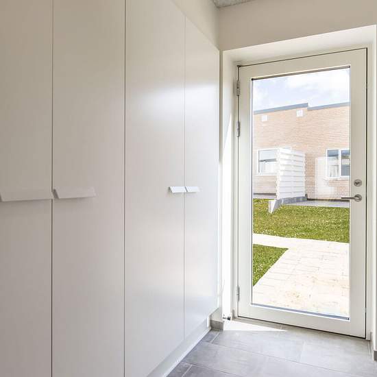 3-værelses Rækkehus på 80 m² i Jelling Havegangen 5, 7300 Jelling Haverne Jelling - Lejemålsnr. 9-666-32 Velkommen til Haverne i Jelling – moderne étplansrækkehuse i naturskønne omgivelser I Haverne finder du 57 lyse og velindrettede rækkehuse i ét plan, opført med fokus på kvalitet og funktionalitet. De rummelige boliger byder på troldtektlofter, der sikrer behagelig akustik, og en gennemtænkt indretning, hvor lys, komfort og hverdagsliv går op i en højere enhed. Med dette 3-værelses rækkehus får du: To gode værelser Entre med skabe og klin...