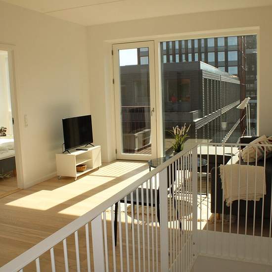 Lejligheden er beliggende på en ugeneret og rolig sidevej med smukt fællesareal, og er placeret i midten af Carlsberg Byen helt tæt på cafeer, butikker og offentlig transport. Lejligheden har et eksklusivt layout i to etager med stort åbent køkkenalrum, som har direkte adgang til lejlighedens sydvendte og solfyldte altan. På denne etage er desuden et stort badeværelse, og et velindrettet soveværelse med masser af skabsplads. På lejlighedens øverste etage er en stor åben stue, hvor der også kan indrettes kontorplads, og her finder man igen et...
