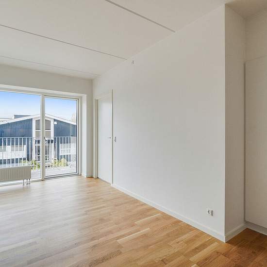 Alle lejligheder har et køkken-alrum i åben forbindelse med stue. I de ét-værelses lejligheder fungerer køkken-alrummet ligeledes som soveværelse. Ellers har du ét eller to separate værelser. Badeværelset er velindrettet med vaskefaciliteter og gulvvarme. Alle lejemål har egen terrasse eller altan. Hårde hvidevarer Boligerne har alt i hårde hvidevarer inklusive vaskemaskine, tørretumbler og opvaskemaskine. Husdyr Lejere kan ansøge om tilladelse til at holde indekat og hund på adressen. Udekatte er ikke tilladt. Se vores samlede husdyrsreg...