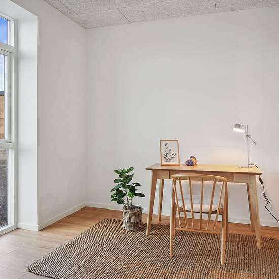 OBS: Det er et krav, at lejere på dette lejemål er 55+ år og uden hjemmeboende børn. Fra hoveddøren træder du ind i entréen, hvor der er adgang til to separate værelser. Du får et stort køkken-alrum med enten køkken-ø eller et vinkelkøkken. Fra køkken-alrummet er der adgang til et stort badeværelse med vaskesøjle og det tredje værelse med indbyggede skabe. Fra stuen er der direkte adgang til boligens flisebelagte terrasse, som er indrammet af en nyplantet hæk. Der er gulvvarme i alle rum, som opvarmes med fjernvarme. På Mejsehøj, Spurvehø...