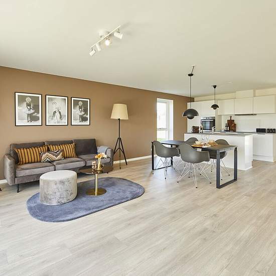 På Ida Nielsens Vej ligger dette lyse og moderne 4-værelses dobbelthus på 105 m², opført i 2023. Her er rammerne skabt til et liv, hvor hverdagen flyder let, og hvor både funktion og stemning spiller sammen i en bolig, der føles rar fra første skridt indenfor. Lys, luft og fællesskab Boligens opholdsrum samler køkken, alrum og stue i ét åbent rum, hvor de store vinduespartier trækker dagslyset helt ind i hverdagen. Køkkenet er stilrent og indbydende med god arbejdsplads og naturlig plads til spisebordet – og lige ved siden af kan sofaen fi...
