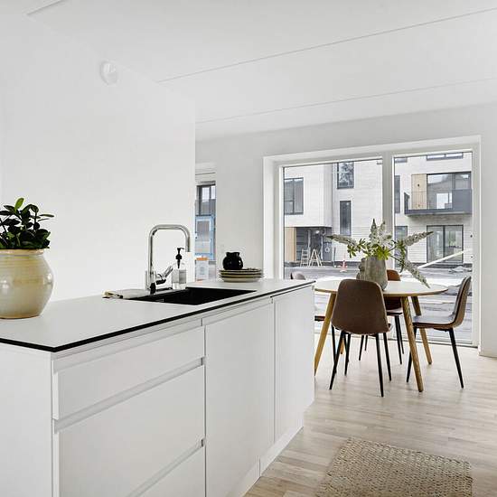 2-5 værelser (66-169 m²), lyst og moderne lavenergibyggeri. Lige til at flytte ind i for alle familietyper og aldersgrupper. Rækkehusene er på 2-3 etager, og henvender sig primært til jer der søger et rækkehus med en mindre have og mange værelser, og direkte adgang til grønne omgivelser og det gode nabofællesskab.Rækkehuset har både adgang til en forhave mod gårdrummet og en direkte adgang til parken. Etagehusene er i fire etager og er den bebyggelsestype med flest forskellige lejlighedstørrelser. Stuelejlighederne har udgang til en lille f...