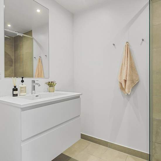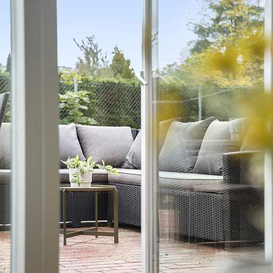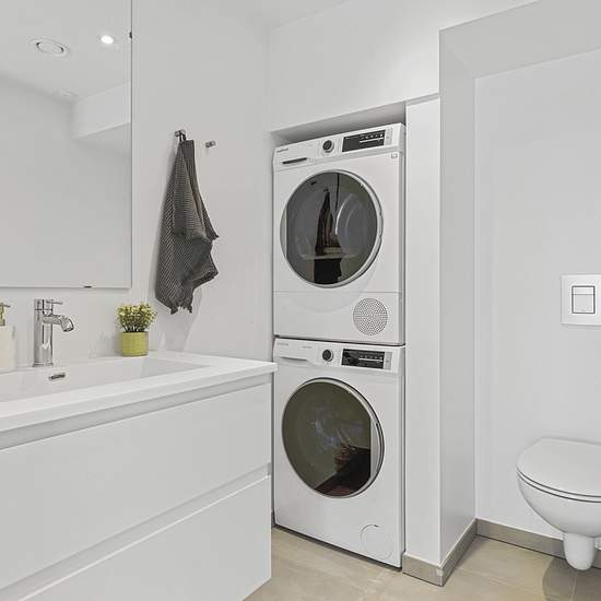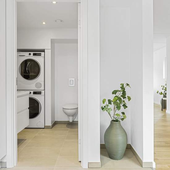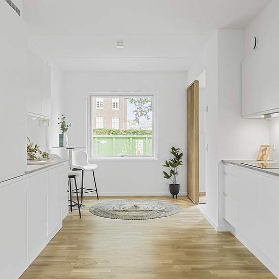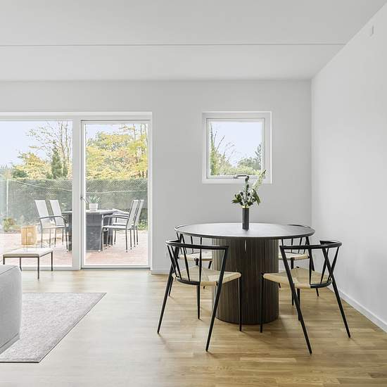 Flot og moderne rækkehus med skøn beliggenhed Dette nybyggede og moderne rækkehus i to etager byder på 3 gode værelser, et køkken i åben forbindelse med stuen, to badeværelser, en entre og en dejlig terrasse. Stueetagen byder på det rummelige og lyse køkken, som er veludstyret med køle/frys, indbygningsovn, kogeunit, emhætte og opvaskemaskine. Køkkenet fører videre ind i den flotte stue, hvor der er direkte adgang til den en privat terrasse. Derudover byder stueetagen på en entre med indbyggede skabe samt et gæstebadeværelse med vaskemaskin...