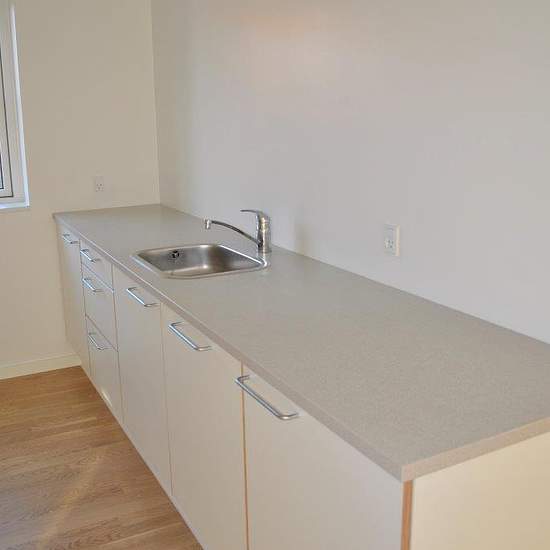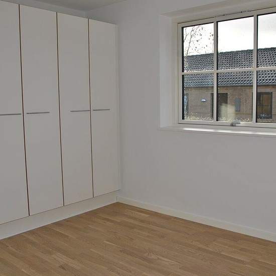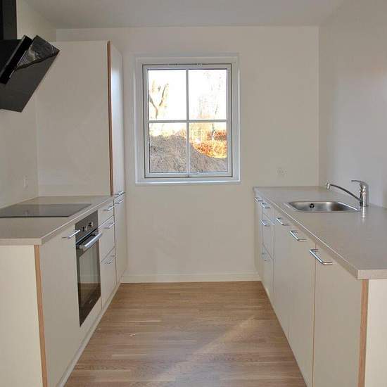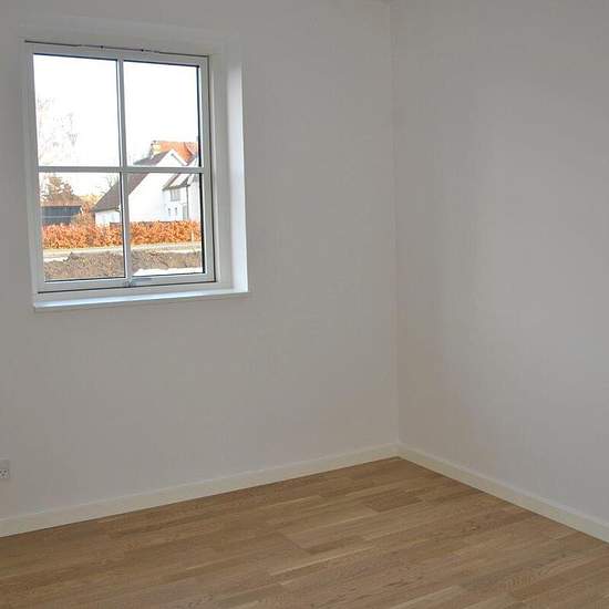 Moderne rækkehus fra 2016 med dejlig have og terrasse. Boligen indeholder en fin entré, et værelse samt et lyst og indbydende badeværelse med bruseniche og vaskemaskine. Derudover er der et åbent opholdsrum med stue og køkken i ét. Køkkenet er udstyret med køle-/fryseskab, ovn, kogeplader, emhætte og opvaskemaskine. Den lyse stue har direkte udgang til terrassen og haven. Endvidere rummer boligen et soveværelse med faste skabe samt endnu et ekstra værelse.