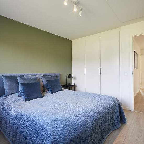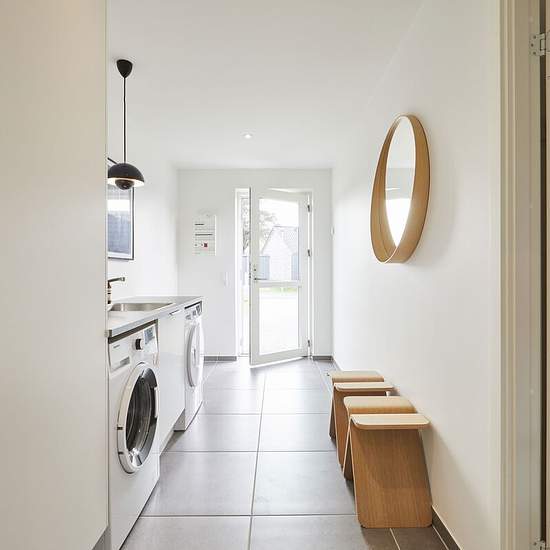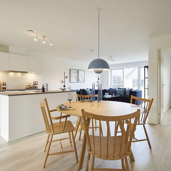 Moderne rækkehus hvor alle kvadratmeter er udnyttet til fulde. Man træder ind i særskilt entre med videre adgang til et værelse. Fra entreen går man ind i husets alrum med et moderne køkken i åben forbindelse til stue med gode muligheder for indretning af et hyggeligt sofahjørne. Fra alrummet finder man særskilt bryggers med vask samt vaskemaskine og tørretumbler, herfra finder man et stort moderne badeværelse. Ydermere er der et stort soveværelse med indbygget skabsvæg. Fra stue er der direkte udgang til den bagvedliggende terrasse samt dej...