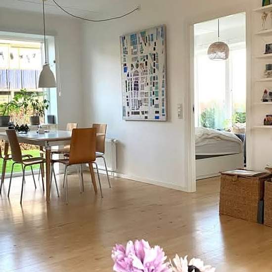Fra Nordsjælland til København Leje-til-leje Haves: Dejligt enderækkehus i Humlebæk. 104 m2, fordelt på 4 værelser, nederst i ét plan med egen lille have og grønne fællesarealer med legeplads og frugttræer lige udenfor i stille område. Tilladelse til 2 hunde/katte. 10.164, ekskl. forbrug. Gåafstand til skøn badestrand, skov og marker. Cykelsti til station, flere gode skoler og daginstitutioner. Lokal biograf, indkøb, Louisiana, Krogerup/Årstiderne, caféer og havne - og kun ca. 30 min til Kbh. På alle måder et virkelig dejligt område at bo i...