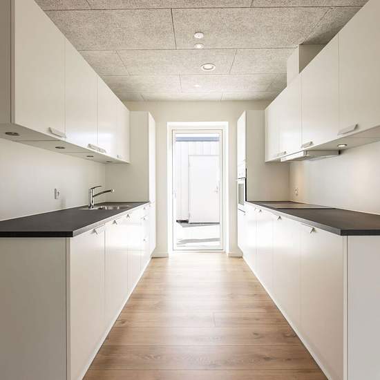 4-værelses Rækkehus på 105 m² i Jelling Haverne 62, 7300 Jelling Haverne Jelling - Lejemålsnr. 9-666-21 Velkommen til Haverne i Jelling – moderne étplansrækkehuse i naturskønne omgivelser I Haverne finder du 57 lyse og velindrettede rækkehuse i ét plan, opført med fokus på kvalitet og funktionalitet. De rummelige boliger byder på troldtektlofter, der sikrer behagelig akustik, og en gennemtænkt indretning, hvor lys, komfort og hverdagsliv går op i en højere enhed. I denne 4-værelses lejebolig får du: Tre gode værelser Stort dejligt køkken i å...