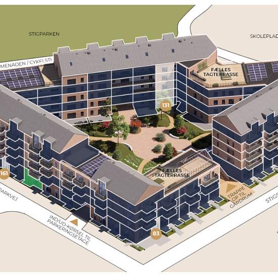 Velkommen til denne lejlighed hvor moderne design møder naturens ro i det luksuriøse boligområde på Stigsborg. En indflytningsklar bolig med en behagelig atmosfære, ideel til både familier og erhvervsdrivende. Lejligheden strækker sig over to plan, hvor begge etager er udstyret med toilet og bad. I stueplan finder du et rummeligt opholdsrum med vask og køleskab, samt et badeværelse med vaskesøjle. Her er også en praktisk hems, som kan fungere perfekt som teenagerens egen plads. Trappen fører dig op til 1. sal, hvor du træder ind i det lyse ...
