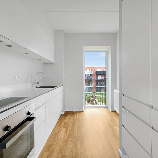 Ejendommen I Randers Kaserne kan du bo i én af de 96 moderne boliger, som er opført i 2020. Ejendommen tilbyder et bredt udvalg af boliger, der spænder fra 2 til 4-værelses lejligheder på mellem 67 og 106 kvm. Alle boliger har en række bekvemmeligheder, herunder eget depotrum samt egen altan eller terrasse, hvor du kan nyde solen og omgivelserne. Ejendommen tilbyder yderligere bekvemmeligheder såsom elevator og gratis parkering, og der er mulighed for ansøgning om ét mindre husdyr i bygning 2. Boligerne Indenfor finder du store, rummelige kø...