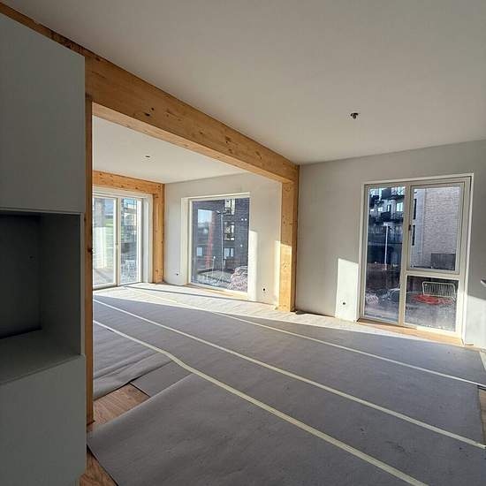 Rummelig 5-værelses lejlighed med åbent opholdsrum med god plads til at samles hele familien. Fra opholdsrummet er der udgang til en stor hjørnealtan. I opholdsrummet er der også fine træbjælker som giver et fint udtryk. Køkkenet er et kvalitetskøkken fra Svane med opvaskemaskine og viktualierum , så der er god opbevaring. Lejligheden har selvfølgelig også et skønt rummeligt badeværelse med vaskesøjle. OBS: Boligerne er stadig under opførelse. De billeder, der kan ses her på siden er derfor ikke det færdige resultat.