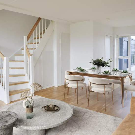 I Rodskov, tæt på Hornslet og kun 18 km nord for Aarhus, finder du dette attraktive 4-værelses rækkehus med plads til hele familien. Rækkehuset er i to plan og indeholder: • Stort køkken-alrum i åben forbindelse med stuen • To badeværelser. Et i stueplan og et på førstesal • Tre store lyse værelser med store vinduespartier Stue, køkken og gæstetoilet er beliggende i stueplan, mens de tre værelser samt husets andet badeværelse forefindes på 1. sal. Overalt i boligen er der gulvvarme. I køkkenet er der alt i hårde hvidevarer og på badev...