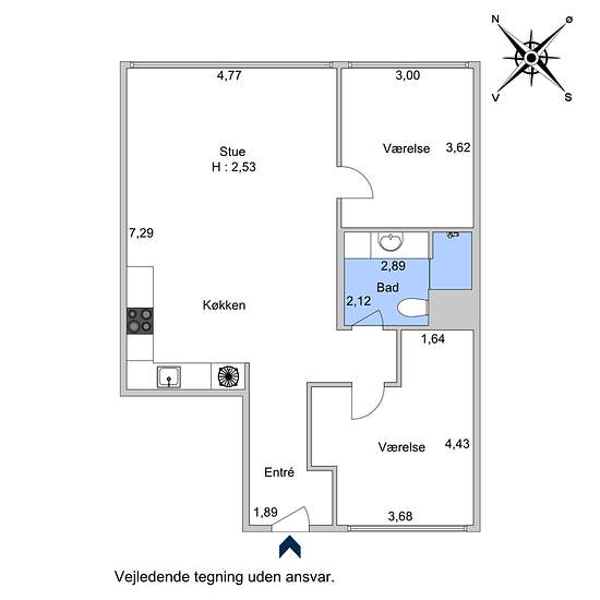 - 3 værelser