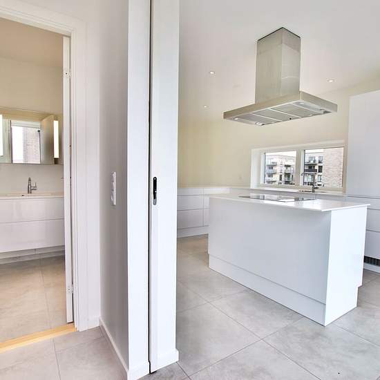 Velkommen indenfor i dette fantastiske rækkehus i moderne stil på Marshalls Alle. Rækkehusets 118 kvadratmeter er fordelt på 2 plan, hvor du på underetagen finder husets dejlige køkken med køkken-ø, stuen (i forlængelse af køkkenet) samt det ene badeværelse. På 1. sal finder du rækkehusets 3 værelser med indbyggede skabe (walk-in closet på det ene af værelserne) samt boligens andet badeværelse - her med vaskesøjle. Med denne bolig får du ligeledes fra stuen adgang til en dejlig terrasse og have, egen carport og tilladelse til at holde husd...