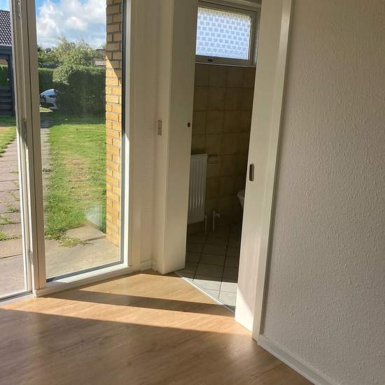 Stor skønt hus på lukket vænge. Huset indeholder entre, hertil adgang til 4 gode værelser samt 2 badeværelser. Stor lys stue i åbent forbindelse til køkken/alrum hvortil der er lavet et ekstra værelse og udgang til bryggers. Så i alt rummer huset 5 gode værelser. Til huset er der stor skøn have hvor solen virkelig kan nydes Direkte tilmeldt til forsyningerne - Opvarmes med fjernvarme. Tilladt at have en kat samt hund efter aftale.