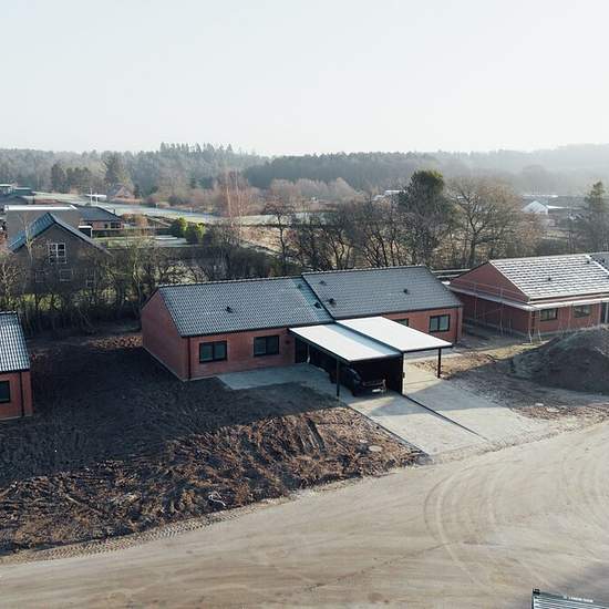 Lækkert og helt nyt rækkehus i den mest eksklusive bebyggelse i Assentoft. Naturskønt og med god plads omkring husene. Nogle har udsigt over marker og skov. Husene er alle bygget som dobbelthuse så man kan gå rundt om egen bolig. Byggeriet er tilpasset det skrånende landskab. Her får du en lækker bolig med gulvvarme overalt. 2 soveværelser og en stor vinkelstuestue der er i åben forbindelse med køkkenet. Dejligt bryggers med plads til vaskemaskine og tørretumbler samt bordplade med håndvask. Badeværelse med bruseniche og egen carport med s...