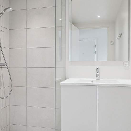 Om boligen: Denne skønne og optimerede lejlighed starter med at byde dig velkommen i et lyst entréområde med plads til at hænge overtøjet og med adgang til et stort soveværelse, hvor der er plads til den store seng – fra soveværelset har du yderligere adgang til lejlighedens depotrum, som med fordel kan bruges til walk-in, hvis dette foretrækkes. Fra entréen har du ydermere adgang til badeværelset, som er opført i et tidløst lækkert design, rummeligt og med separat bruseniche og hertil både med vaskemaskine og tørretumbler. I det store lyse ...