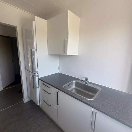 Lejligheden er renoveret i 2020 med nyt køkken og bad og ny altan. Lejligheden er indrettet med en fordelergang til køkken, badeværelse, soveværelse og til stuen med adgang til mindre værelse. Der er god skabsplads i lejemålet. Der er depotrum i kælderen samt fællesvaskeri. Ejendommen har dørtelefon. Beliggenheden er i roligt kvarter i gåafstand til både HerningCentret, gågaden, uddannelsesinstitutioner og diverse indkøbsmuligheder. Billederne er fra lignende lejlighed i ejendommen og kan derfor godt være spejlvendt. Plantegningen er ret...