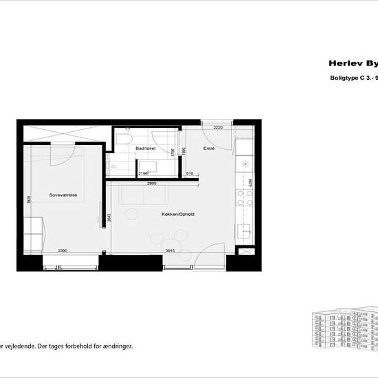Moderne og lys 2-vær. lejlighed med eksklusiv beliggenhed over Herlev Bycenter