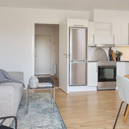 Lejemålet Velkommen inden for i denne skønne 3-værelses lejlighed på 73 m2, som fordeler sig på to plan på hhv. 1. og 2. sal. Her venter et hyggeligt opholdsrum, der forener en stue med et vinkelkøkken fra Tvis. Køkkenet er udstyret med hårde hvidevarer, herunder et komfur, en opvaskemaskine, et køle/fryseskab og en emhætte, så du kan kokkerere lækre måltider. Fra stuen er der direkte udgang til boligens altan, der er det perfekte sted at nyde en kop kaffe eller en afslappende stund på en varm sommerdag. Derudover har lejligheden to sovev...