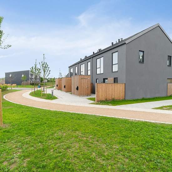 Når du træder ind ad døren, møder du rækkehusets entré hvorfra bryggers og husets ene af to badeværelser er placeret. Videre fra entréen træder du ind i det åbne køkken-alrum der ligger i forbindelse med stuen, som kan samle familien til mange skønne timer. I forlængelse af stuen kan du åbne op til husets terrasse, hvor der er plads til at nyde det dejlige uderum. På 1. sal ligger husets fire soveværelser og det andet badeværelse. Rækkehusene er udført med materialer af høj kvalitet og med fokus på funktionalitet. Til alle husene medfører et...