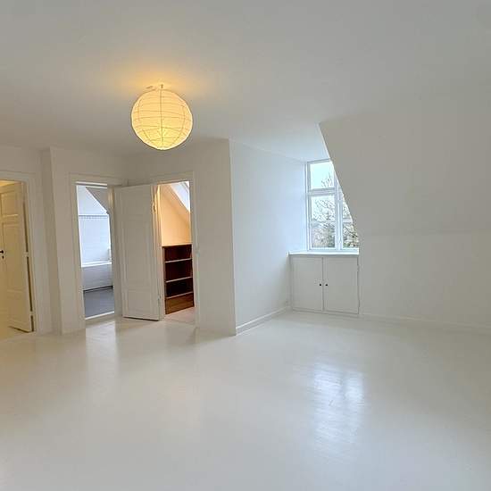 På en stille isoleret vej, ved Bernstorff Slot og park, ligger dette hyggelige lejemål i et halvt dobbelthus. I stueetagen er der en stor lys entre og et badeværelse med bruseniche samt et godt soveværelse. Videre i stueetagen er husets hjerte, et stort hyggeligt køkken der er i åben forbindelse med et stort spiseområde samt stuen. Her er der højt til loftet og dejligt lyst, med sol det meste af dagen. I stuen er der ligeledes en hyggelig pejs og udgang til den dejlige sydvendte have. Haven er meget stor og deles med ejer af ejendommen. Der ...
