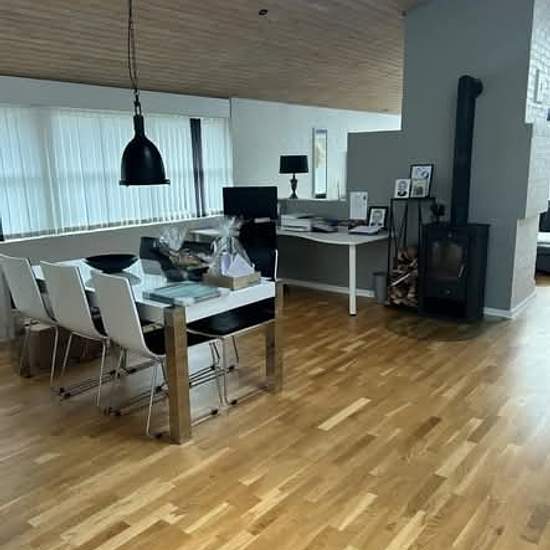 Stort lækkert byhus i Middelfart. Huset ligger i et roligt kvarter, tæt på handle muligheder, samt bymidten. Udover det, er det også nemt at komme til Motorvejen. Huset er i 1 plan, med tilhørende stor lukket Terrasse, og indeholder: - Køkken - Bryggers - Entre - Mellemgang - 2 badeværelser - Soveværelse - Børneværelse - Walk in værelse (Med div skabe mm) Kan ændres til børneværelse - Spisestue - Opholdstue - Egen have - Huset er 175m2 - Dobbeltgarage med værksted Prisen er 11.500,- pr mdr + Forbrug (Som afregnes direkte me...