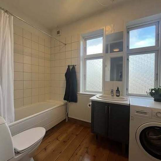 Svendborg - 5 vær (2 stuer en suite og 3 separate værelser) udlejes snarest muligt. - OBS udlejes ikke som delelejlighed. Vi søger en lejer til vores 1 sal i vores 2 fam ejendom på Egensevej i Svendborg midtby med 300 meter hen til gågaden. Vi bor selv i stueetage og kælder. Lejligheden er lys og hyggelig, har egen indgang, er på 112 kvm, har 2 stuer en suite, køkken i åben forbindelse med den ene stue, et soveværelse og 2 mindre værelser samt Badeværelse med badekar og vaskemaskine. Der er en altan i fin størrelse og med skøn udsigt. Der ...