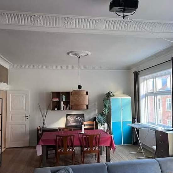 Roommate wanted for the loveliest apartment in the middle of the pedestrian street Move-in Feb. 1 As mentioned, the apartment is located in the middle of the pedestrian street (Søndergade 70). With such a central location the apartment is within walking distance or a short bike ride from most places, including Bruuns Galleri, the river and Aarhus University. The apartment is 185 sqm and consists of 4 rooms, kitchen, large living/dining room, toilet and pantry. There is a washing machine, tumble dryer and dishwasher installed in the apartme...