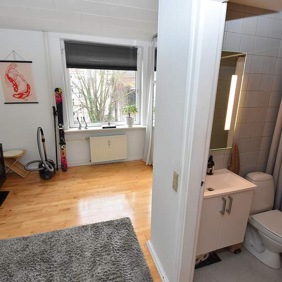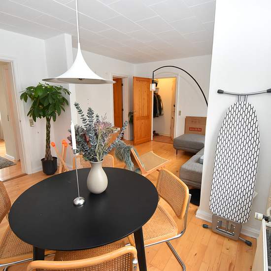 Welcome to this apartment where light meets liveliness in the heart of Aalborg. A move-in ready home with a pleasant atmosphere. The apartment features a well-designed entrance hall, providing space to hang coats and put away shoes. The spacious living room is perfect for both dining and relaxation, with room to enjoy time with friends and family. The room facing the quiet courtyard offers a peaceful oasis with space for both a bed and a wardrobe. The kitchen is equipped with a stove, extractor hood and sink, making cooking a pleasure. The ...