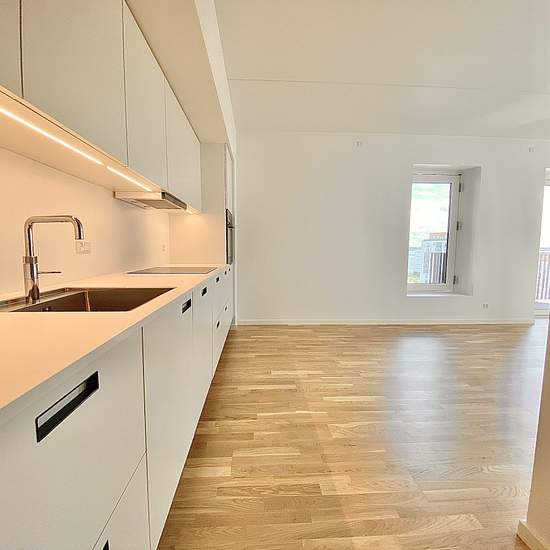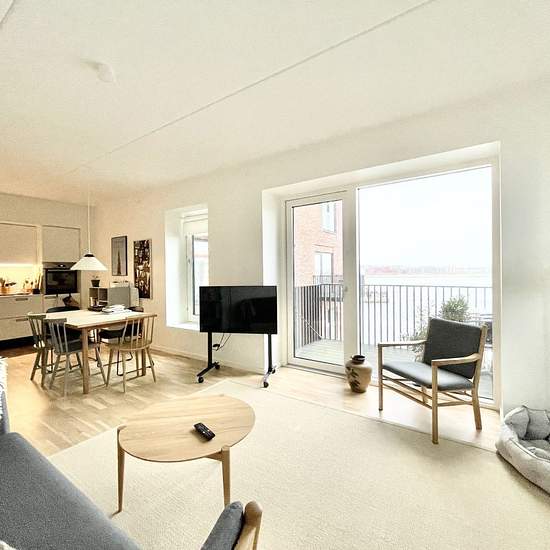 Velkommen til Østre Havnepark – tæt på vandet, centrum og Øgadekvarteret! Her finder du en nybygget 2-værelses lejlighed fra 2022 med gulvvarme, ventilationsanlæg – og alt i hvidevarer. Lejligheden byder på et flot, lyst køkken fra Svane med alle hvidevarer fra Blomberg. Fra det åbne køkken-alrum er der direkte adgang til boligens store altan med fantastisk fjordudsigt og morgensol. Boligen har en praktisk entré – oplagt til sko og overtøj – der leder videre til badeværelset med rummelig bruseniche, vaskemaskine og tørretumbler samt spejl...