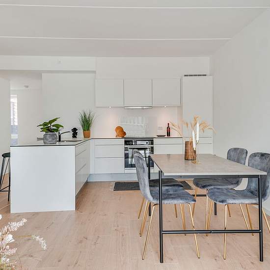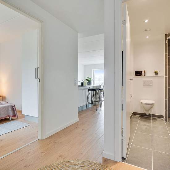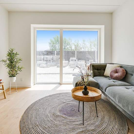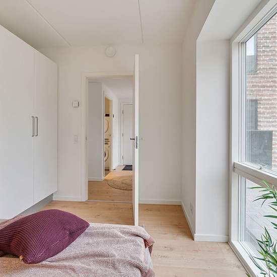 Stylishly finished, newly built apartment with balcony Sleek, bright and simply delightful. That about sums up this newly built 2021 apartment, where only quality materials have been used — something that’s easy to see. Your future home is part of a larger development with buildings that present a handsome, classic appearance in red brick with black window frames, a wide external gallery and an elevator. You will become part of a peaceful, enclosed area that suits families with children, couples or singles who want to live centrally and cl...