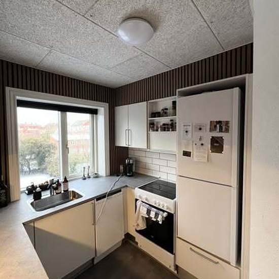 2-room apartment of 61 sqm, located centrally in Esbjerg city centre, available from 1 April 2026. The apartment is on the 1st floor and has been recently renovated; it features a large spacious living room, a large bedroom with access to a southwest-facing balcony, and a modern bright kitchen with a dishwasher. The apartment also includes an entrance hall that serves as a corridor between the rooms, and from there you also have access to the lovely, almost-new bathroom. Pets are not allowed. There is access to a shared courtyard, and there ...